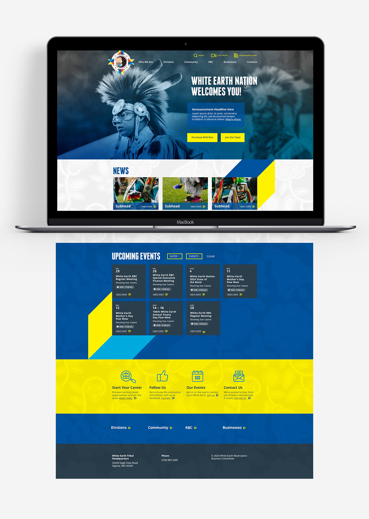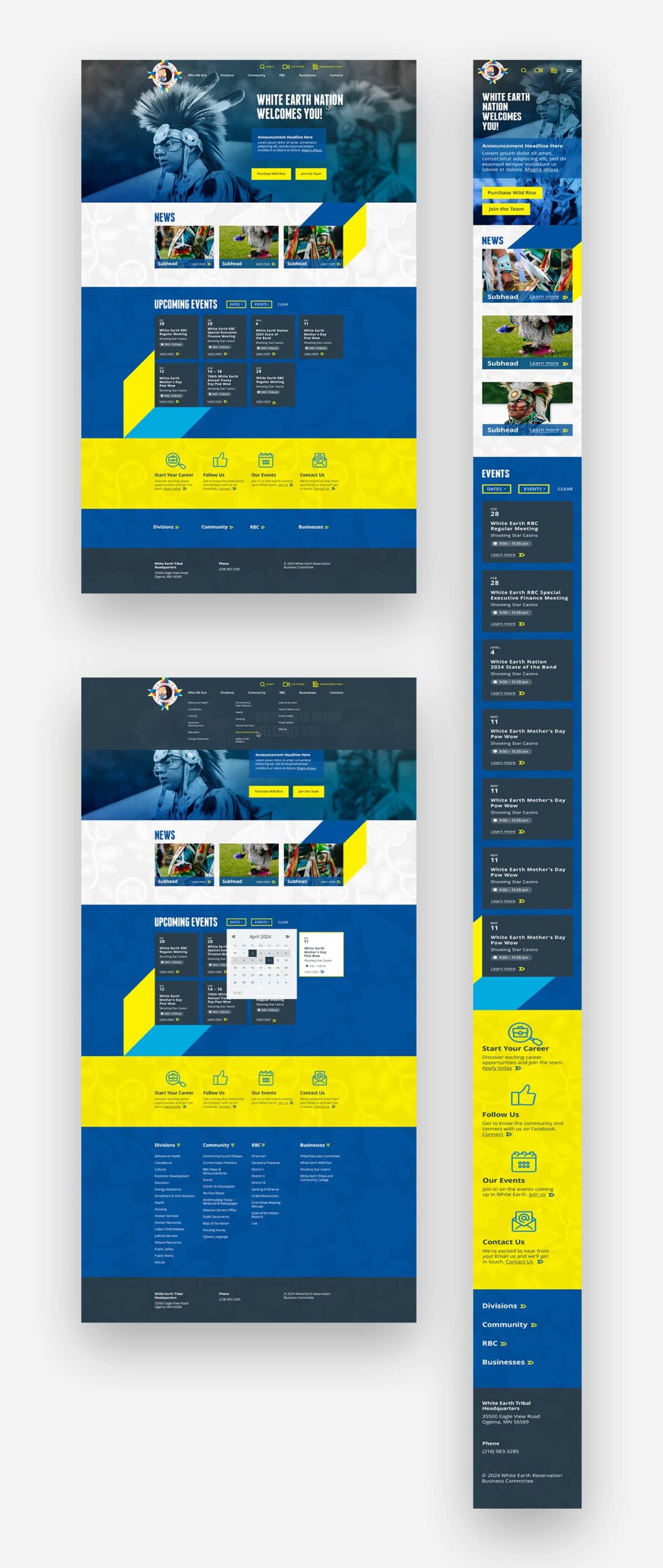 A full-scale website project for White Earth Nation, a prominent Native American tribe located in Northwestern Minnesota. Features of this project included a brand refresh, along with a custom web presence. A custom event calendar was incorporated to showcase tribal event information for tribal members cleanly and intuitively.